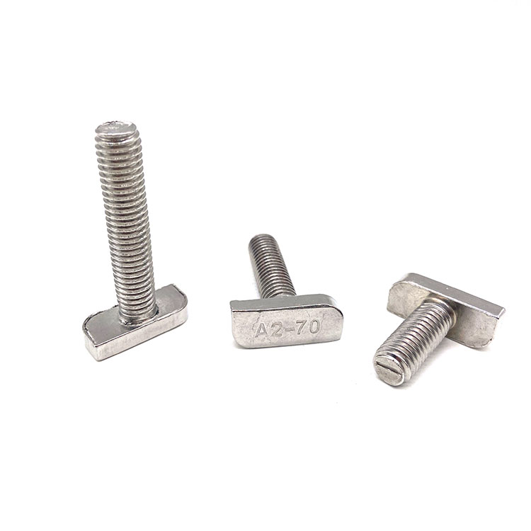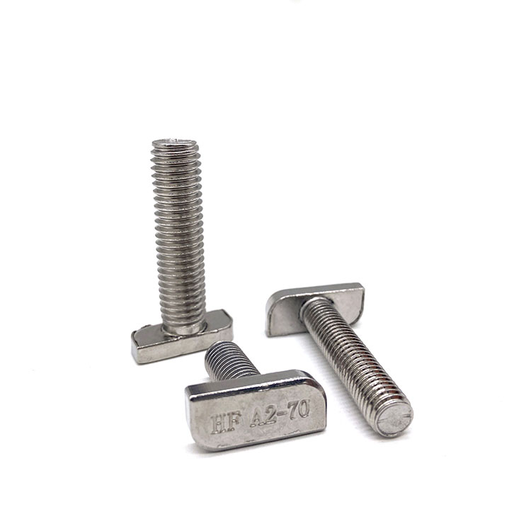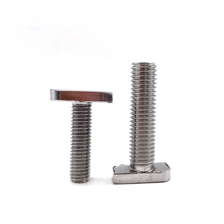 T-bolts ແມ່ນ fasteners ພິເສດສໍາລັບໂປຣໄຟລ໌ມາດຕະຖານເອີຣົບ. ຫົວ Bolt ໂດຍກົງເຂົ້າໄປໃນສະລັອດຕິງ profile, ການຫມຸນຕາມເຂັມໂມງ 90 ອົງສາ, ມັນສາມາດຕັ້ງຕໍາແຫນ່ງອັດຕະໂນມັດແລະລັອກໃນຂະບວນການຕິດຕັ້ງ, ມັກຈະຖືກນໍາໃຊ້ກັບແກ່ນ flange, ເປັນຜູ້ຊ່ວຍທີ່ດີໃນການຕິດຕັ້ງພາກສ່ວນ Angle ແລະອຸປະກອນເສີມອື່ນໆ. T bolts ຂອງສະເພາະແລະຄວາມຍາວທີ່ແຕກຕ່າງກັນສາມາດໄດ້ຮັບການຄັດເລືອກຕາມໂປຣໄຟລ໌ທີ່ແຕກຕ່າງກັນ, ຄວາມກວ້າງຂອງສະລັອດຕິງແລະຄວາມຕ້ອງການການຕິດຕັ້ງ.