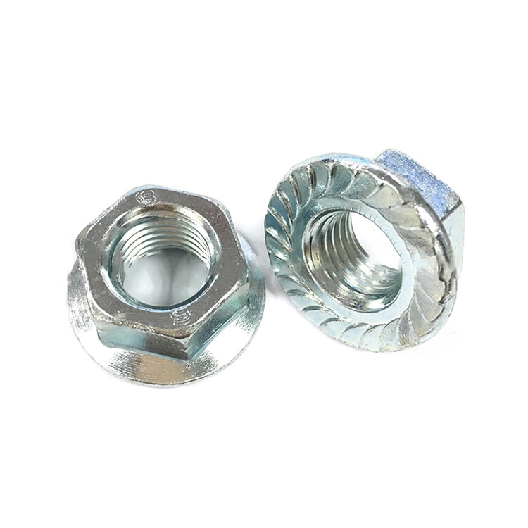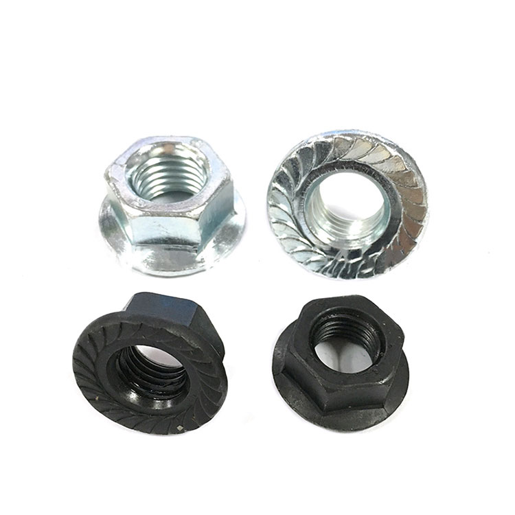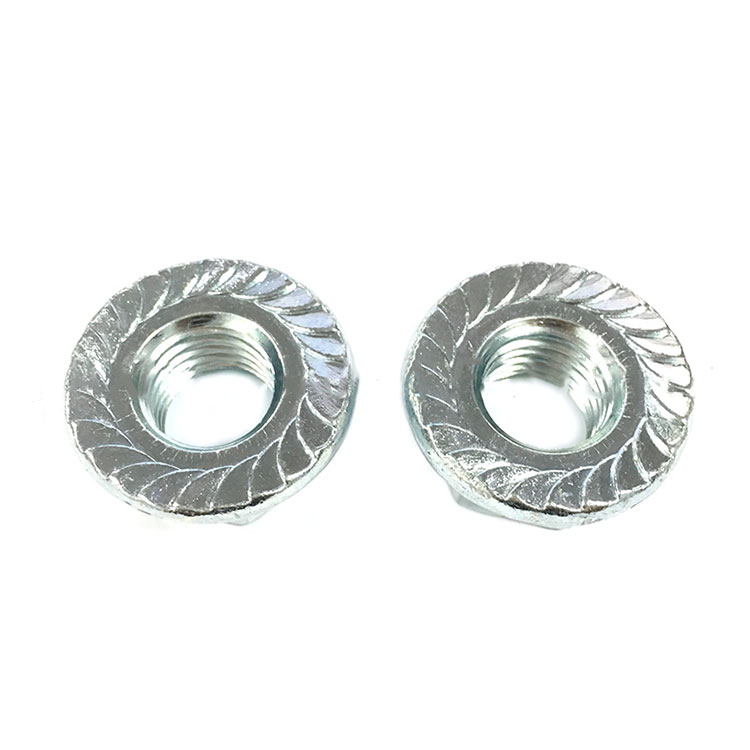 Flange Nuts ແມ່ນຄ້າຍຄືຫມາກແຫ້ງເປືອກແຂງທີ່ມີເຄື່ອງຊັກຜ້າ, ແຕ່ມັນເປັນສ່ວນທີ່ປະສົມປະສານ, ບໍ່ສາມາດແຍກອອກໄດ້. ມັນເປັນທີ່ຮູ້ຈັກກັນດີວ່າໝາກນັດໜ້າແປນ, ໝາກເບັງແປນ hex, ແກ່ນຊັກຜ້າ hex. ດ້ານ flange ສາມາດ serrated ຫຼືແປ, serration ສາມາດປ້ອງກັນບໍ່ໃຫ້ຫມາກແຫ້ງເປືອກແຂງຈາກການຫມຸນ. ແຕ່ຢູ່ໃນພື້ນຜິວແຂງຫຼືຕ້ອງໃຊ້ເຄື່ອງຊັກຜ້າຮາບພຽງ, ຫຼັງຈາກນັ້ນພື້ນຜິວ serrate ບໍ່ສາມາດໃຊ້ໄດ້.